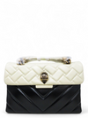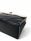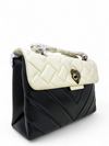 Material y color externo: Suave piel de cordero beige y negra, combinando trama y estampados de chevron.