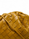Material y color externo: Piel nappa intracciato en tono camel. Material y color interno: Piel lisa camel. Detalles internos: 1 Compartimento. Forma de cerrar: Magnético. Incluye: Dust bag, bandolera fina removible.