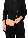 Material y color externo: Piel de cordero matelassé chevron nude. Material y color interno: Microfibra con acabado similar al ante. Detalles internos: 1 Compartimento, 1 Bolsillo. Color de herrajes: Dorado. Forma de cerrar: Botón a presión. Incluye: Dust bag, cadena removible.