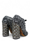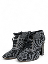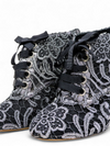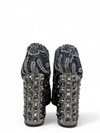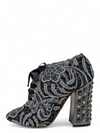 Material y color: Macramé floral negro, detalles de cuero y taches