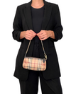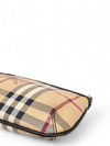 Material y color externo: Cuero con patrón novacheck y café. Material y color interno: Jacquard café con logo. Detalles internos: 1 Compartimento. Color de herrajes: Dorado. Forma de cerrar: Cremallera.