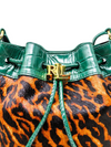 Material y color externo: Suave pelo de becerro con estampado de leopardo y detalles en cuero verde con relieve de cocodrilo.
