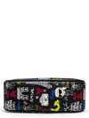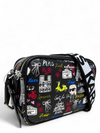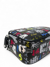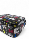 Material y color externo: Cuero sintético negro con estampado gráfico multicolor.