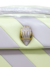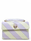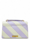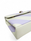 Material y color externo: Piel color lila y hueso con estampado de rayas.