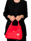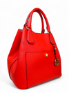 Material y color interno: Cuero saffiano rojo con estampado floral.