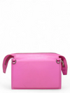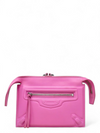 Material y color externo: Cuero rosado. Material y color interno: Cuero rosado. Detalles internos: 2 Compartimentos, 3 Bolsillos internos, 1 Bolsillo externo Color de herrajes: Plateado. Forma de cerrar: Cremallera. Incluye: Dust bag, bandolera removible.