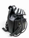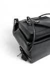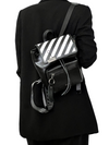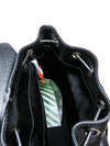 Material y color externo: Cuero negro con detalles blancos. Material y color interno: Tela negra. Detalles internos: 1 Compartimento, 1 Bolsillo interno, 1 Bolsillo externo. Color de herrajes: Negro. Forma de cerrar: Haladera. Incluye: Dust bag.