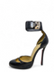 Material y color: Gamuza, cuero y cristales en tono azul y rojo.