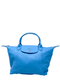 Material y color externo: Tela canvas beige y azul con monogramas. Material y color interno: Tela beige. Detalles internos: 1 Compartimento, 1 Bolsillo interno, 1 Bolsillo externo. Color de herrajes: Plateado. Forma de cerrar: Magnético.