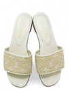 Material y color: Tejido beige con monogramas y cuero blanco.
