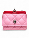 Material y color externo: Piel de becerro acolchada rosada y roja.