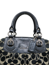 Material y color externo: Tela negra y beige con monogramas, cuero negro.