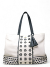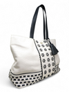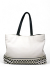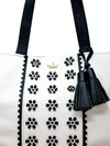 Material y color externo: Cuero blanco y negro con detalle de flores.
