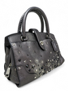 Material y color externo: Cuero gris oscuro metalizado con detalles de taches.