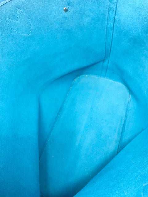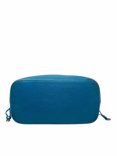 • Material y color externo Cuero Epi azul. • Material y color interno Gamuza azul. • Detalles internos 1 Compartimento. • Color de herrajes Plateado. • Forma de cerrar Abierto....